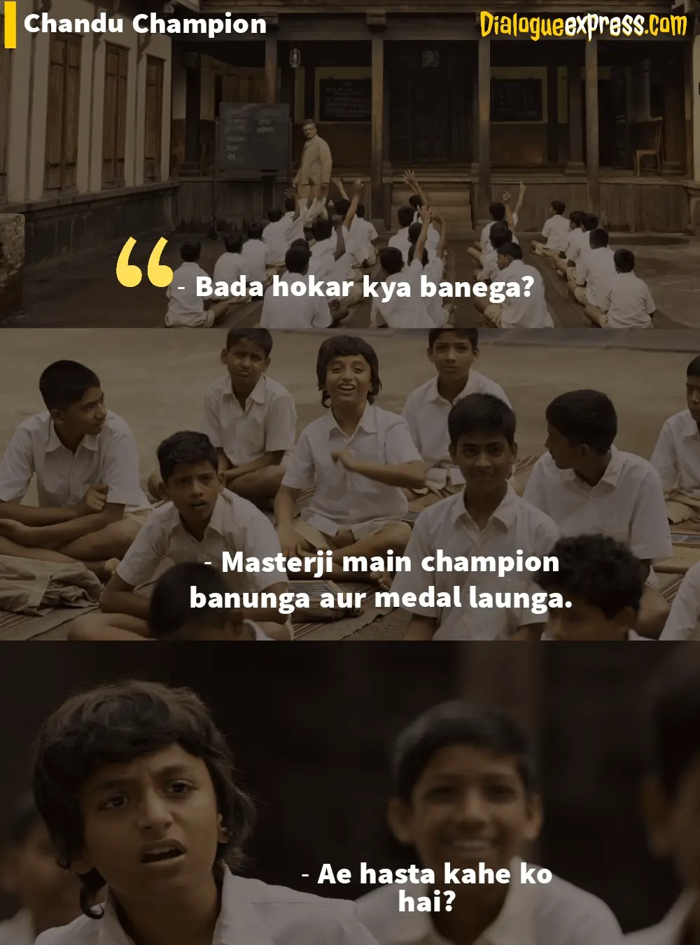 12. Mujhe ladne ka hai sir. Har us Chandu ke liye jo champion banna chahta hai. Har us Chandu ke liye jo champion ban sakta hai.