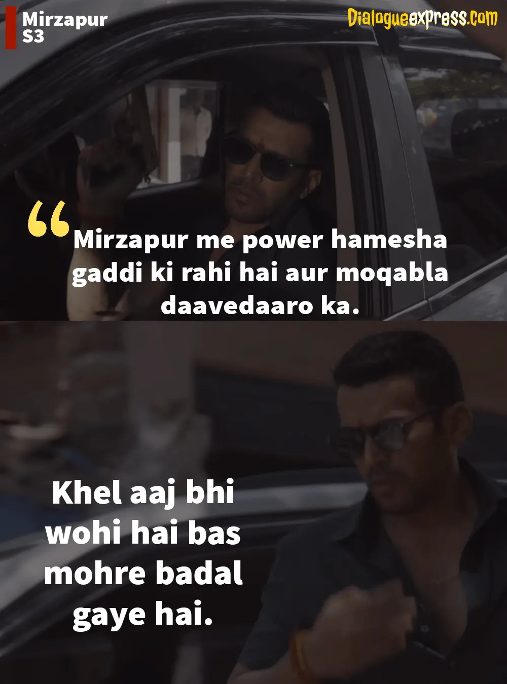 4. Mirzapur me power hamesha gaddi ki rahi hai aur moqabla daavedaaro ka. Khel aaj bhi wohi hai bas mohre badal gaye hai.