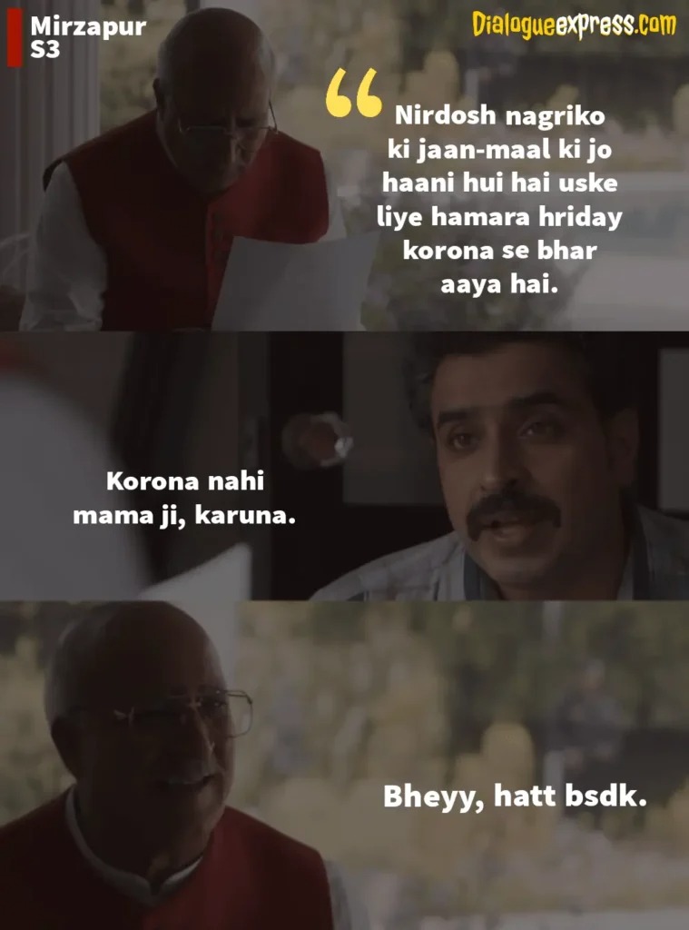 There are many more questions of this kind whose answers are hidden in this show. But until then, let’s look at some of the best Mirzapur Season 3 dialogues and the previous seasons as well, which will help you understand the chronology easily.
