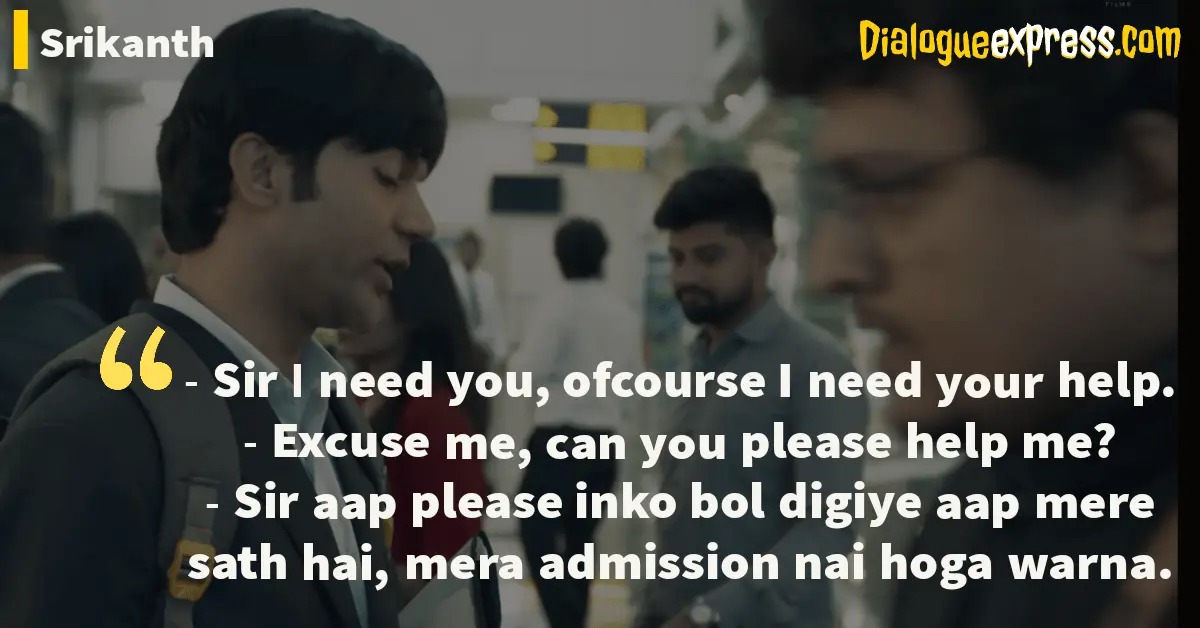 The dialogue from that scene in the Srikanth movie is quite heart-wrenching. We can see him at the airport, asking for help from nearby passengers and requesting them to accompany him. And if he doesn’t make it on time, his admission to MIT might also be jeopardized.